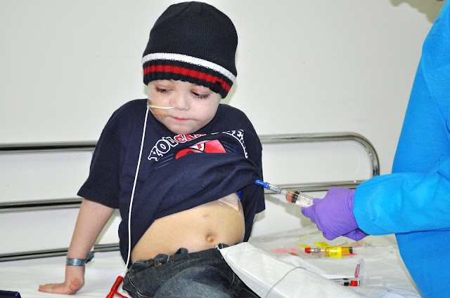 Here is Dr. Lemons getting the chemo ready to put into his spine. I actually hate this picture because seeing his little feet laying there makes me sad. I wish I could hold him the hold time and tell him everything will be ok.
